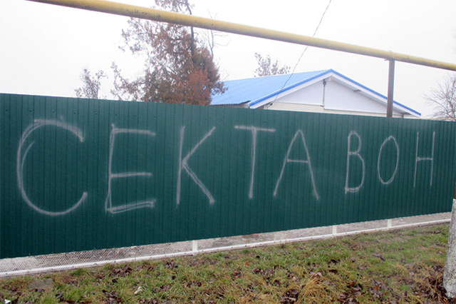 Тайная жизнь "детей солнца", как их называли в станице Староджерелиевской, где окопалась секта, проходила за высоким забором, и местные жители о ней не догадывались. Когда узнали - разбили стекла в окнах дома, написав крупными буквами на заборе: "Секта - вон!"