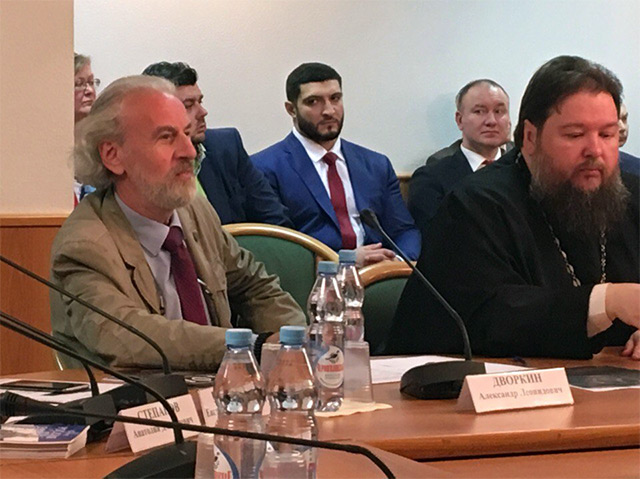 Одним из основных докладчиков стал Александр Леонидович Дворкин - руководитель Центра религиоведческих исследований во имя священномученика Иринея Лионского. В его сообщении прозвучал развёрнутый комментарий о современных механизмах противодействия деятельности тоталитарных деструктивных культов (сект), последствиях их деятельности для России, роли в их поддержке со стороны стран Запада, в первую очередь - аппарата Государственного департамента США.